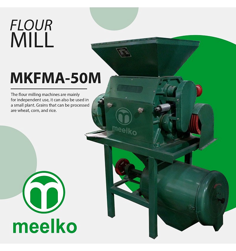Molino de harina MKFMA-50M con capacidad de 200–250 kg/h, ideal para uso independiente o en planta pequeña. Procesa trigo, maíz y arroz con operación sencilla, diseño robusto y rendimiento eficiente.